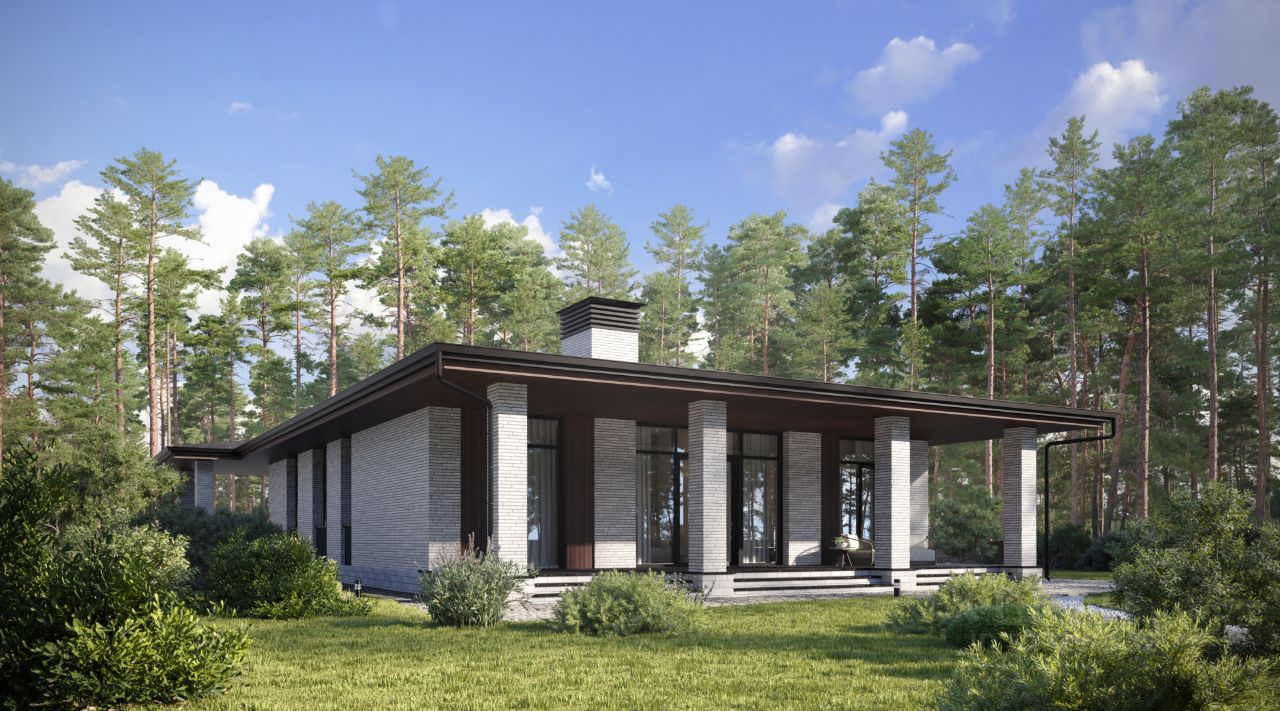 Одноэтажный дом в стиле Райт, площадью 175 м², расположенный на участке 12 соток