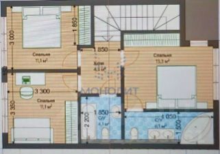 - 2 этаж - 2-3 спальных комнаты (мастер -спальня) , 2 санузла , холл.