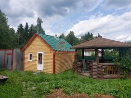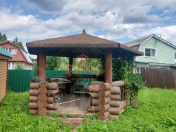 На участке располагается баня из бревна (4х3м), туалет, летняя кухня, беседка из сруба (4 х 4м) и гараж.