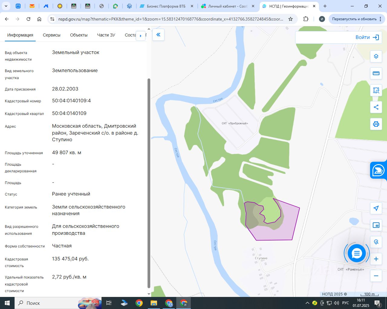 Кадастровый номер участка 50:0***:01***0109:*** указал продавец