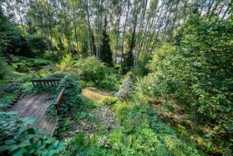 Выполнен великолепный ландшафтный дизайн. На участке уютно расположены места для отдыха и для занятий медитацией/йогой.