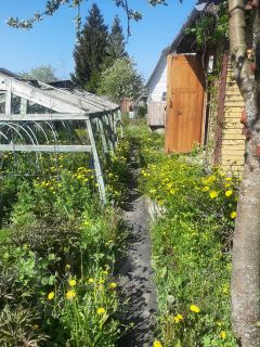 На участке: множество цветов, плодовых деревьев и кустарников.