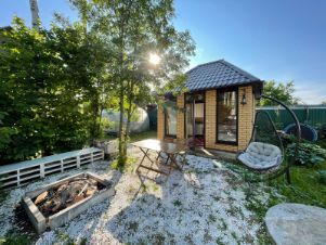 УЧАСТОК 9,24 сотки, сухой, ровный, с лесными деревьями (березы), высажены туи, цветы и другие красивых растения. Отдельно стоящая капитальная беседка 18м.кв. с витражными окнами в пол, для отдыха укомплектована кухней. В контуре дома сделана площадка с навесом для парковки 2х автомобилей.
