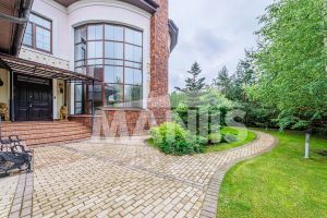 Просторная терраса, вымощенные дорожки, газон, уличное освещение