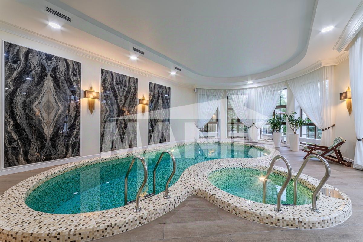 Полноценный SPA-комплекс с бассейном, сауной, тренажерным залом и изолированными апартаментами для персонала (две комнаты, кухня, санузел).