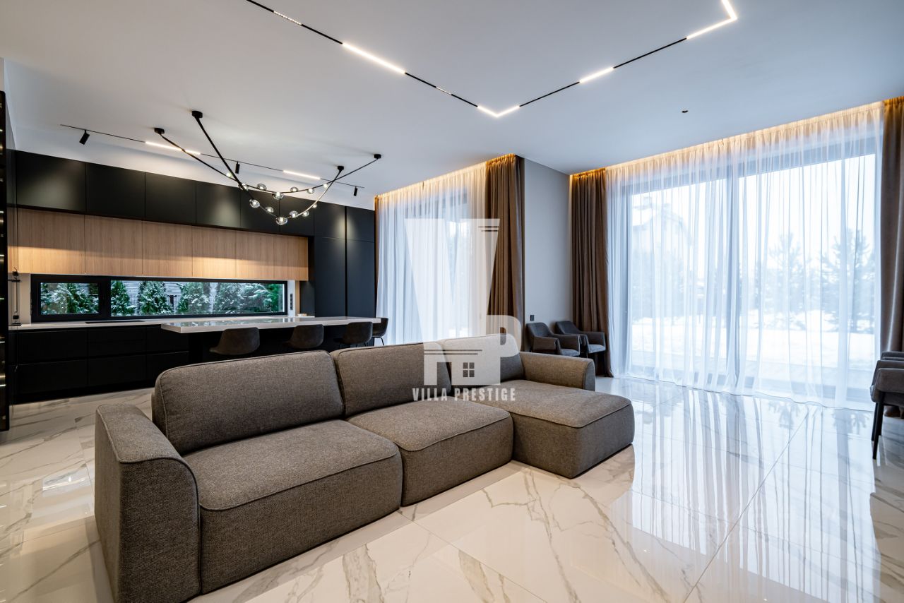 Продажа загородного дома площадью 300 кв.м. Новорижское шоссе, 23 км от МКАД. Коттеджный поселок Новорижский. Дом построен в 2 этажа в современном стиле. Интерьер выполнен в стиле минимализм с использованием дорогостоящих материалов. Потолки 3.2 метра с увеличенными проемами под двери, дают ощущения простора загородного дома. Участок 6 соток расположен в лучшей локации поселка в 2 мин от пруда и детских площадок. Так же на участке уложен газон, ведутся работы по ландшафту. Навес на 2 м/м. Все коммуникации центральные. Готовность под ключ сентябрь.