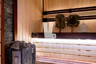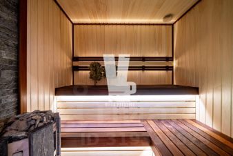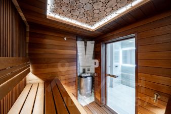 1 этаж — кухня-гостиная с выходом на веранду, спальня, гардеробная, кабинет, с/у, сауна с душевой и выходом на участок, котельная,