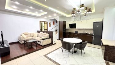 Полностью готов к проживанию, качественный ремонт из дорогих материалов, кондиционирование и теплые полы во всех помещениях, интернет, спутниковое телевидение, вся необходимая мебель и техника (AEG, Electrolux, Liebherr).