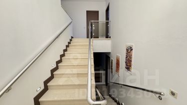 Лестница на второй этаж изготовлена из мрамора, с перилами с двух сторон и остеклением для безопасности.