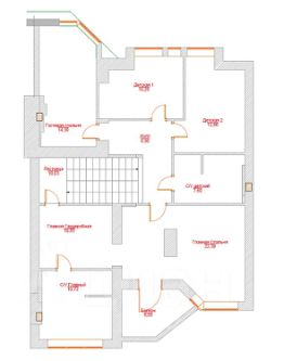 Второй этаж - хозяйская спальня (22 кв.м.) с балконом (вид на Монтевиль), будуаром, гардеробной и большим санузлом (душевая- ванна), спальня (13 кв.м.), санузел с ванной и душевой, детская, кабинет (15 кв.м.).
