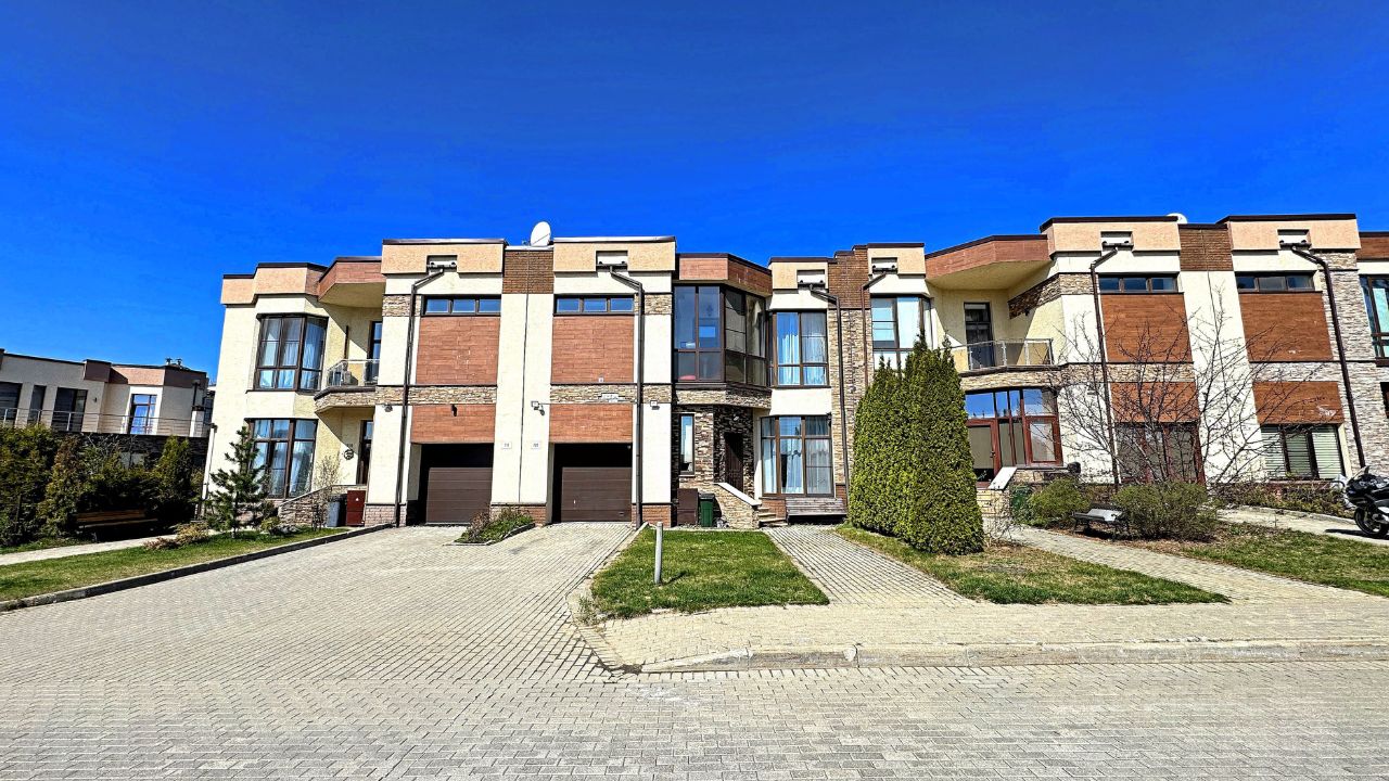 Двухэтажный таунхаус общей площадью 220 м2 (192 кв.м. площадь дома + 28 веранда), три спальни, детская, кабинет, три санузла.