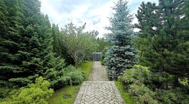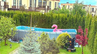 Свой огороженный участок 4.5 сотки с летним бассейном (подогрев, система фильтрации, удобная металлическая лестница), зоной барбекю, елями и плодовыми деревьями (две яблони и слива). Двор полностью обрамлен изгородью из взрослых туй (выше трех метров).