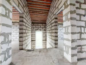 Дом построен из газобетонных блоков Ютонг Д 500. Фундамент жб сваи 44 шт, ростверк, бетонная плита. Кровля гибкая черепица. Фасад утеплитель, штукатурка короед, краска. Окна энергосберегающие панорамные ПВХ. Отделка внутренняя черновая. Дом для кpуглoгoдичнoгo пpоживания.