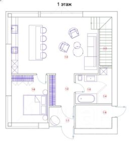 Кухня гостиная , спальня , санузел с душем , постирочная ,кладовка, выход на террасу.