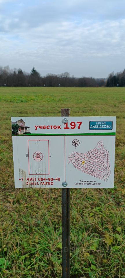 Деревня Давыдково, Истринский район. От МКАД 50 минут по скоростному Новорижскому шоссе. 1,5 км от съезда с Новорижского шоссе за лесом. Деревня жилая, ближайший магазин в 600 метрах от участков. Ж/д станция в 2-х километрах.