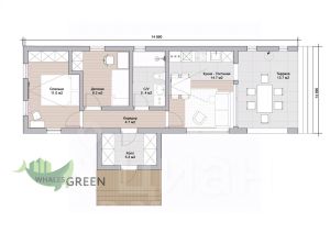 Дом, аналог евродвушки с приятным дополнением в виде большой теплой террасы. В нем расположено две спальни, кухнягостиная, просторный с/у и прихожая, имеется комфортная терраса, при желании можно изменить данный проект и добавить одну комнату, при небольших вложениях.