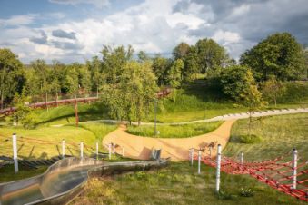 Вдоль всей набережной протяженностью 1,11 км проходит прогулочная тропа, на которую нанизаны различные зоны отдыха. В северной части сконцентрированы спортивные зоны: теннисный корт, универсальная спортивная площадка для игры в баскетбол, мини-футбол, волейбол, также зона воркаута, настольный теннис и мини-гольф. Игровые элементы распределены равномерно вдоль всей набережной. В северной и южной части организованы бульвары и расположены причалы для лодок. Вдоль всей набережной также организованы комфортные спуски к воде с местами для отдыха.