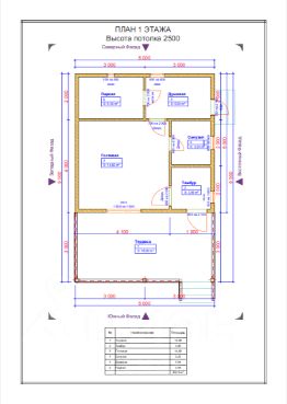 мастерская 6х5 м и прихожая 2х5м с кладовкой под лестницей на второй этаж;