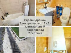 Коммуникации заведены в гараж и баню: электричество 15 кВт (3 фазы), центральный водопровод от общественной скважины, установлено 2 септика, а центральный газопровод проходит по границе участка.