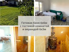 Размеры бани 6*6 + открытая веранда 3*6м.