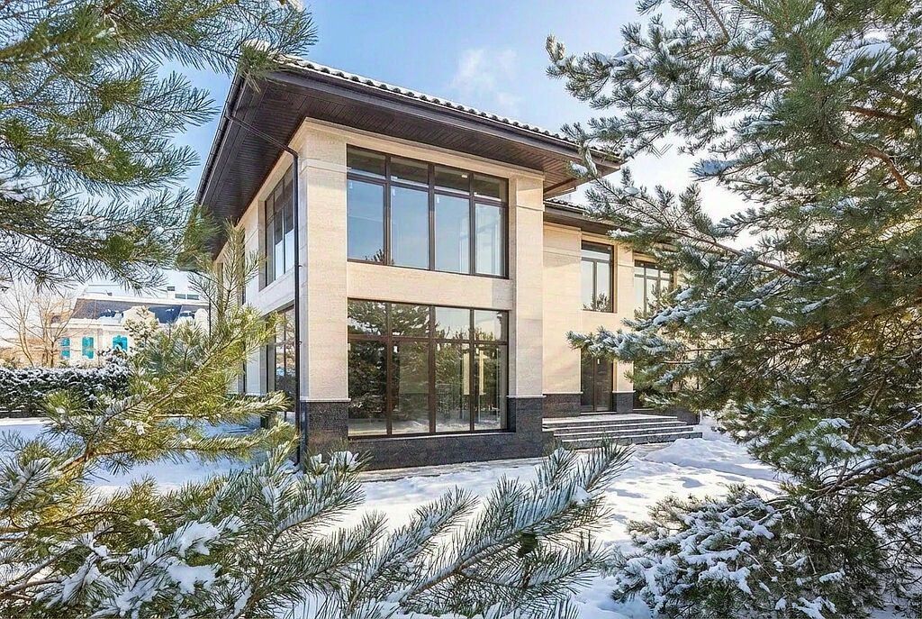 Новый дом под отделку площадью 420 м2 выполнен по технологии монолитно-кирпичного домостроения. Такие дома рассчитаны на длительный срок службы 100-200 лет. Конструкции получаются прочными, устойчивыми к воздействию влаги, без сильной усадки. В монолитно-кирпичных домах хорошо сохраняется тепло. Технология позволяет при необходимости легко производить перепланировку. Здание в бежево-коричневой гамме в современном архитектурном стиле органично вписывается в ландшафт. После окончания работ из окон будут открываться красивые виды на изысканную архитектуру и зелёные насаждения.