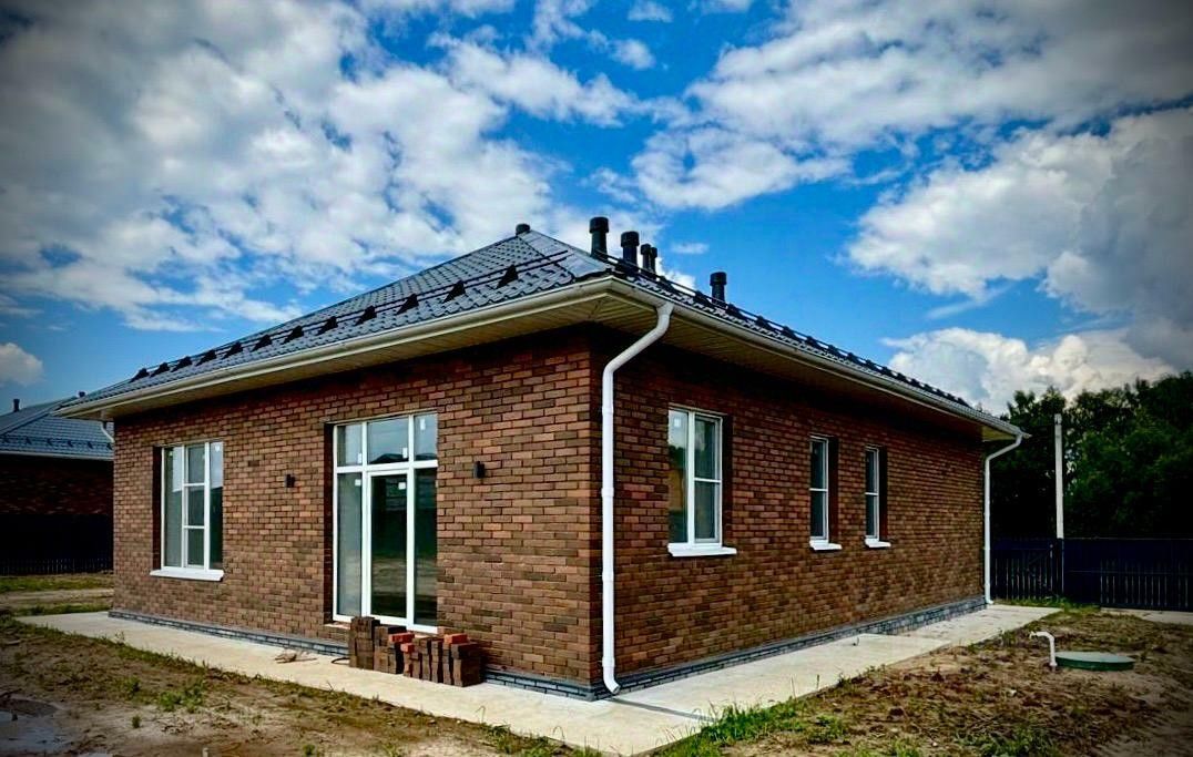Дом построен из кирпича, обложен облицовочным кирпичом. В планировке три спальни, просторная кухня-гостиная с выходом на террасу, большой удобный сан узел. Предчистовая отделка (вайт бокс) уже сделана. Разводка всех инженерных систем, электрики, штукатурка под финишное покрытие, стяжка. Земельный участок обнесен забором.