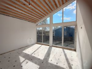 Общая площадь дома 132,1 кв. м. Дом включает в себя кухню-гостиную 47,6 кв. м, три изолированные комнаты (18,7 кв. м, 15,1 кв. м и 8,3 кв. м). В одной из комнат имеется отдельная гардеробная комната с окном (4,4 кв. м). С/У совмещенный 4,7 кв. м, есть техническое помещение бойлерная (6,5 кв. м), прихожая 4,1 кв. м, просторная терраса с камином 16 кв. м. Панорамные окна. В дом два входа. Дом без внутренней отделки.