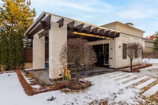 Современный дом с дизайнерской отделкой площадью 550 кв.м в охраняемом коттеджном поселке Ренессанс парк. На участке площадью 17 соток выполнен ландшафтный дизайн, высажены декоративные и лесные деревья, кустарники, вымощены дорожки, отдельно расположены беседка с летней кухней и зоной барбекю, навес на 2 м/м.