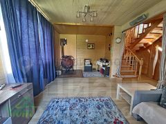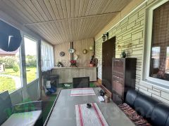 Продается уютный и добротный дом (с регистрацией), каркасный, на свайном фундаменте, с баней из бревна калибра 22 см, патио, навесом для машин, и хозяйственные строения на большом и ухоженном участке 22 сотки!
