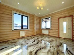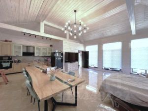 Дом из сруба, на буроналивных сваях и бетонной плите, сейчас в нем заканчивается дизайнерский евроремонт: паркетная доска премиального качества, все подоконники, двери и откосы - ручной работы, кухонный гарнитур ручной работы с бытовой техникой, в каждой комнате установлены уникальные люстры. Отопление разведено по дому, кондиционеры. В бойлерной установлена система водоподготовки, газовый котел, бойлер и системы стабилизации напряжения.
