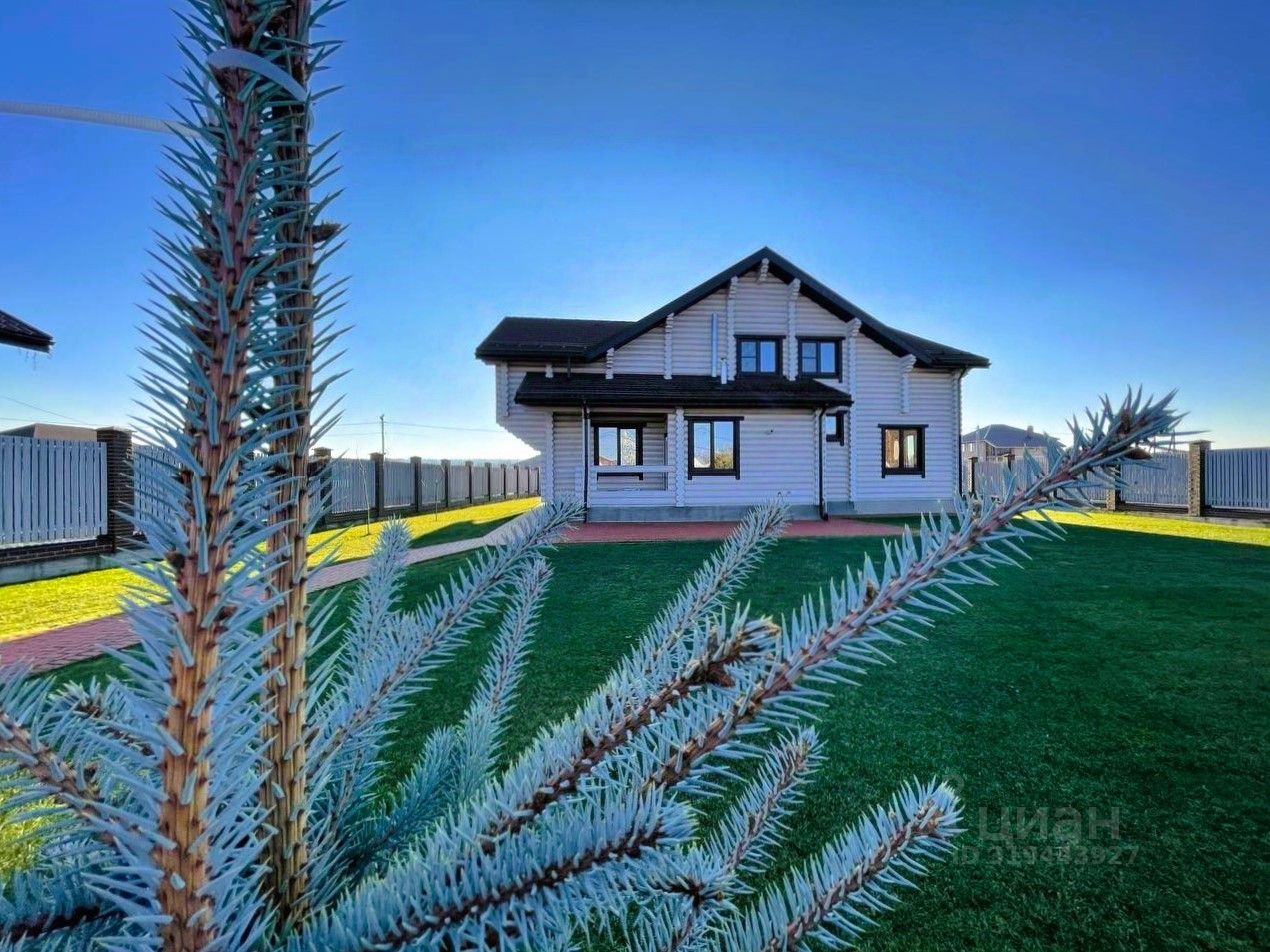 На участке правильной формы: клинкерная тротуарная плитка на бетонной основе, газон с системой автополива, гараж на две машины с комнатой для рабочего, ворота с подъёмным механизмом на пульте, забор из облицовочного клинкерного кирпича, отдельно стоящий зимний гостевой дом, полностью оборудованный мебелью, с кухонным гарнитуром со встроенной техникой, с душевой и санузлом.