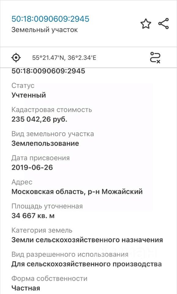 Продаётся участок 34 667 м² (3,46 га) в экологически чистом районе Можайского муниципального округа, Московская область.
