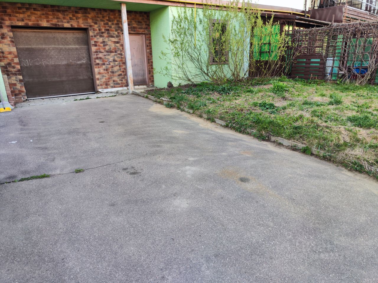 Парковка перед домом на две машины, на территории детская площадка с зелеными насаждениями.