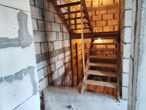 Состоит из 3х этажей. Отопление есть. Можно делать отделку, находясь в доме.