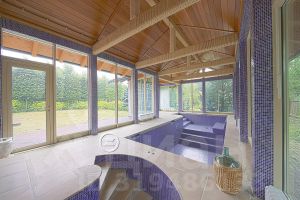 Отдельный корпус с панорамными окнами с  бассейном с противотоком (регулируемое течение по ширине всего бассейна) и гидромассажем;