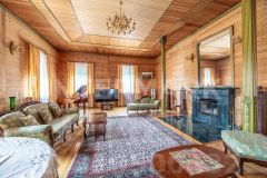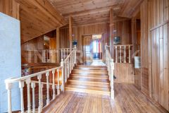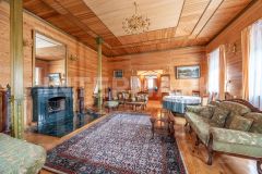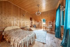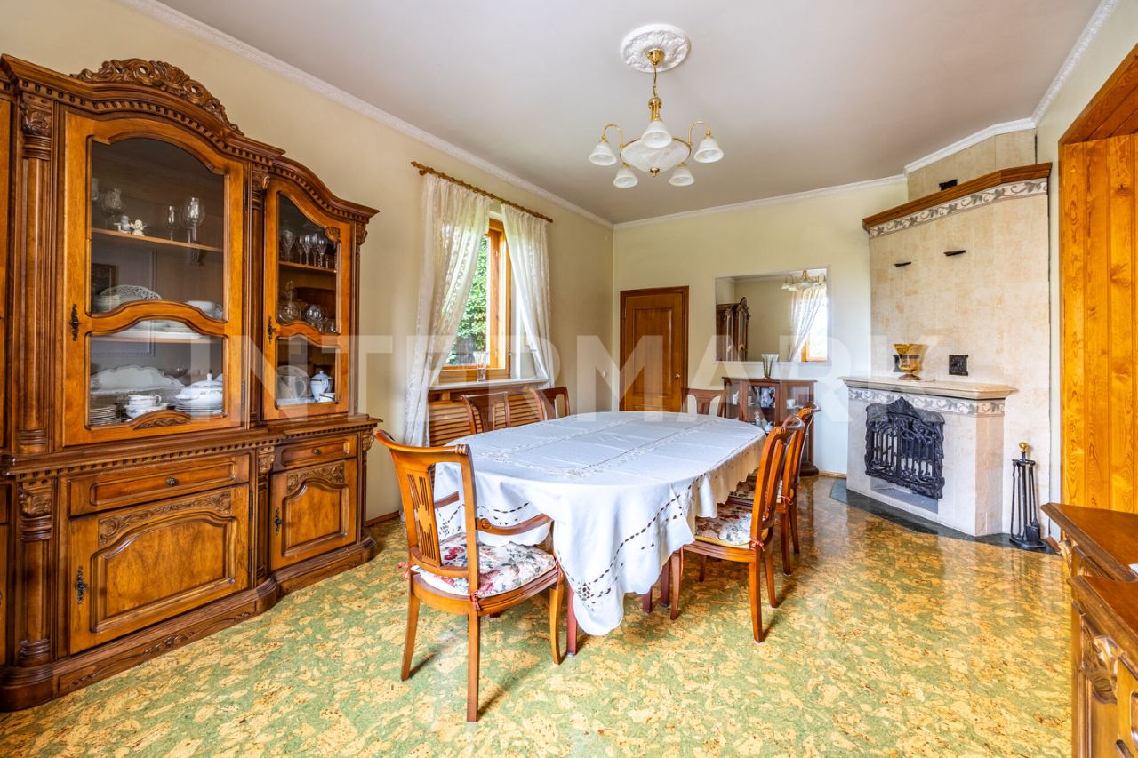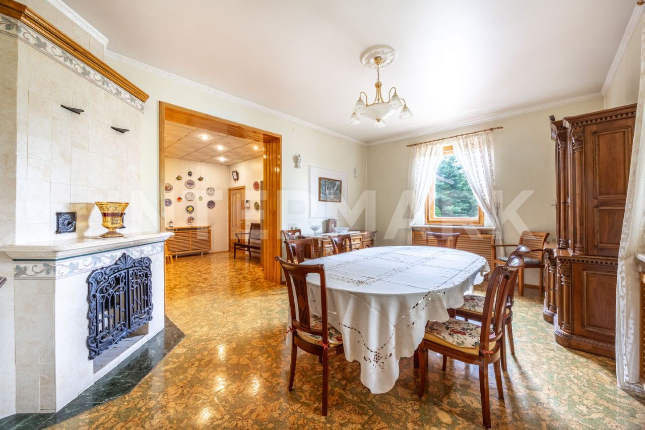 На участке размещены: дом площадью 340 м2 с отделкой "под ключ". Коттедж имеет два уровня. Планировочное решение включает: столовую с зоной камина, гостиную, пять спален, кабинет. Предусмотрен гараж для одного автомобиля. Из окон отличные видовые характеристики на участок. Кроме основного строения на участке есть: баня, дом для гостей площадью 84 м2, а также хоз. постройка и уютная зона для проведения барбекю.