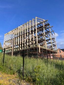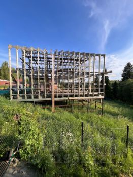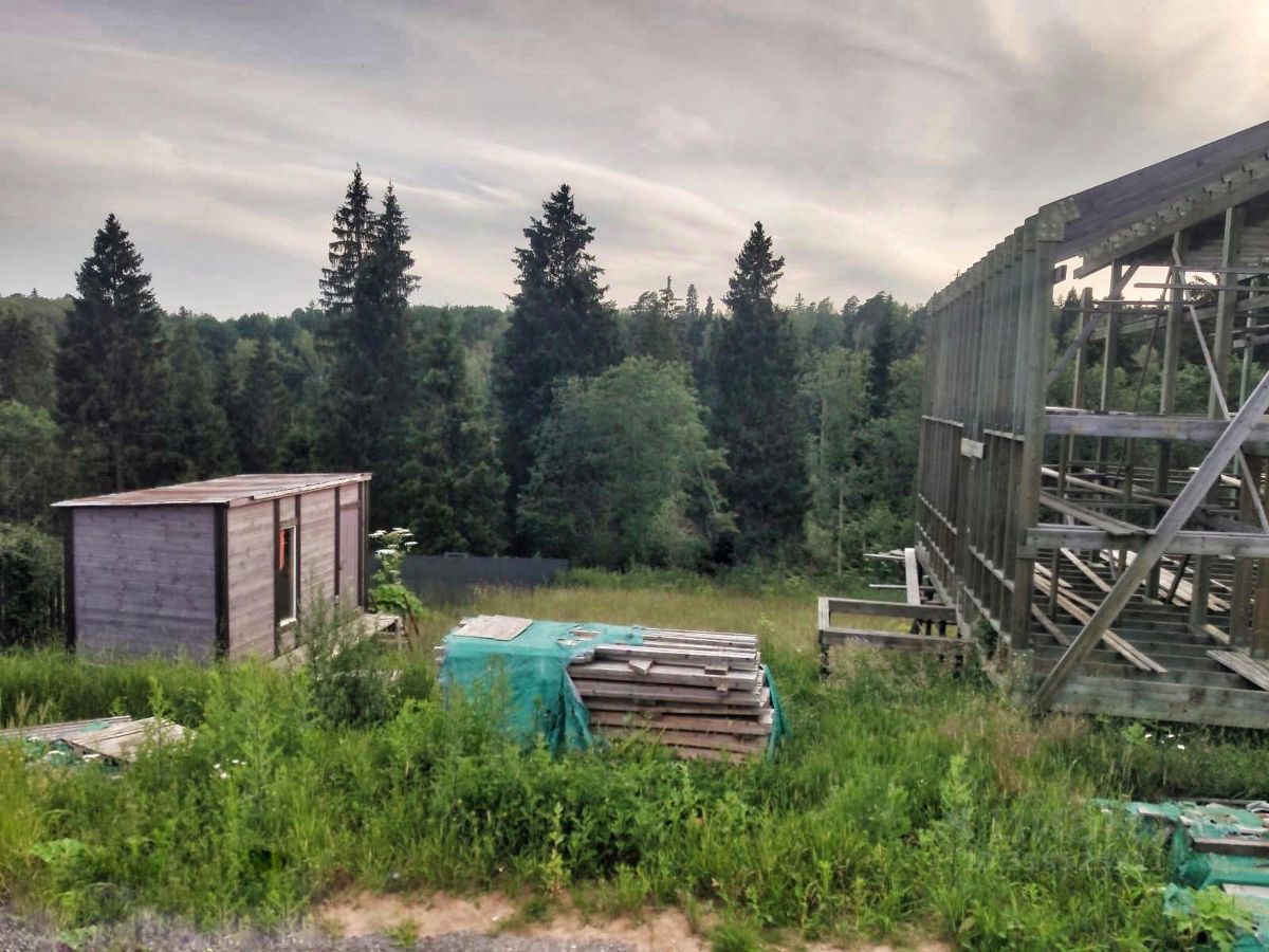 Продается участок у природного заказника Долина реки Волгуша. Участок 9.5 соток. Электричесво, вода (артезианская скважина) проведены. Стоит каркас по финской технологии, на свайно винтовом фундаменте, соедененный коннектерами Finha. Это должен был быть Барн хаус, с большим панорамным остеклением, но не сложилось. На участке стоит хорошая бытовка на сваях. Участок находится в тихом месте, с видом на лес. Летом закаты прямо в окно над лесом.
