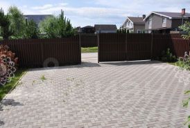 растут плодовые и декоративные деревья. Участок огорожен забором из проветриваемого металлопрофиля, вдоль всего периметра которого посажены туи, создавая великолепный "живой" забор. С фасадной стороны дома, а также при выходе с террасы плиткой выложены площадки для парковки автомобилей и для зоны барбекю. Хозблок.
