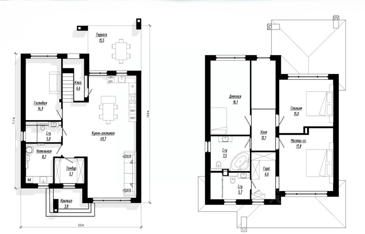 * Просторная мастер-спальня с собственной ванной и гардеробной;