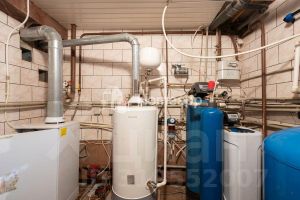 На цокольном этаже котельная с выводом газа, фильтрами для очистки воды, зона сауны с комнатой для отдыха, душевой и просторной парной.