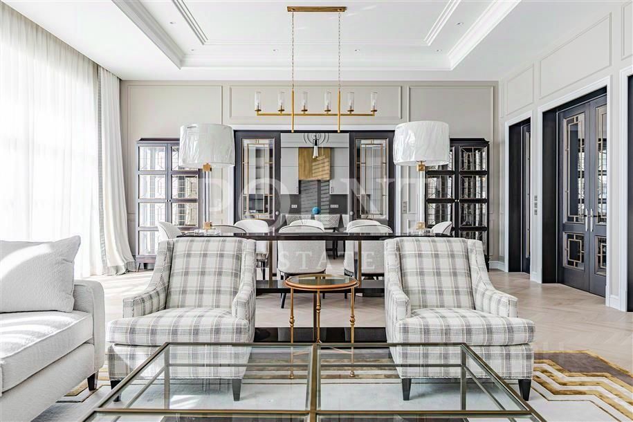 Лот: 101807. ЭСКЛЮЗИВ Point Estate! Просторный загородный дом в стиле Beaux-Arts площадью 863 кв.м построен на участке 41,09 сотки в элитном поселке "Агаларов Эстейт". Отделка фасада выполнена из натурального камня, установлены деревянные стеклопакеты и немецкая фурнитура Siegenia. В отделке использованы: итальянский керамогранит, мрамор, инженерная доска из дуба, английская краска, дизайнерские обои, итальянская и немецкая сантехника, немецкая кухня из массива с техникой Miele и Liebherr. Применены современные решения по инженерным системам. Во всех помещениях предусмотрены приточно-вытяжная вентиляция с рекуперацией тепла, канальные кондиционеры Daikin, а также автоматическая регулировка тёплых полов и конвекторного отопления. В котельной используется надёжное немецкое оборудование производителей Tece, Oventrop, Viega, Wolf, Meibes.
