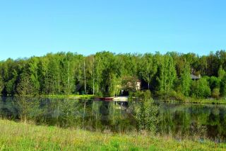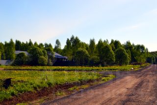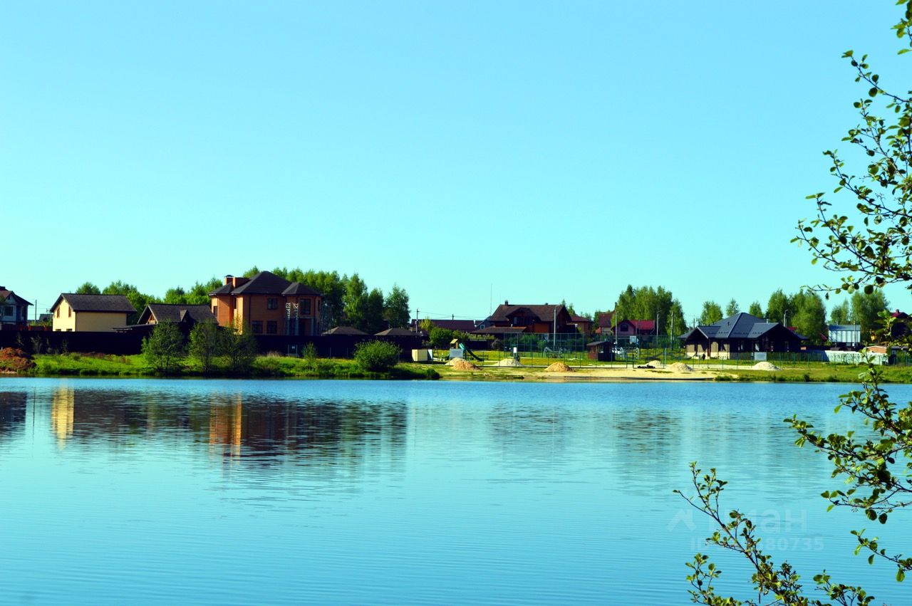 Участок на берегу реки Никажель в новом современной коттеджном посёлке имеющим свой песчаный пляж. Окружен лесным массивом.