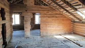 Продам дом в д. Здехово, в 30 км от МКАД по Фряновскому шоссе. Общая площадь 320 м2 (2 эт + цокольный этаж). Из бревна ручной рубки из-под Архангельска. Без внутренней отделки. Грибка нет. Перекрытия на 1 эт. ж/б плиты + выполнена стяжка пола, на 2 этаже деревянные. Внутренние стены есть все - частично из бревна и из бруса, менять расположение можно как угодно. Крыша из Ондувилла (мягкий материал, не гремит при дожде, легко обслуживать).