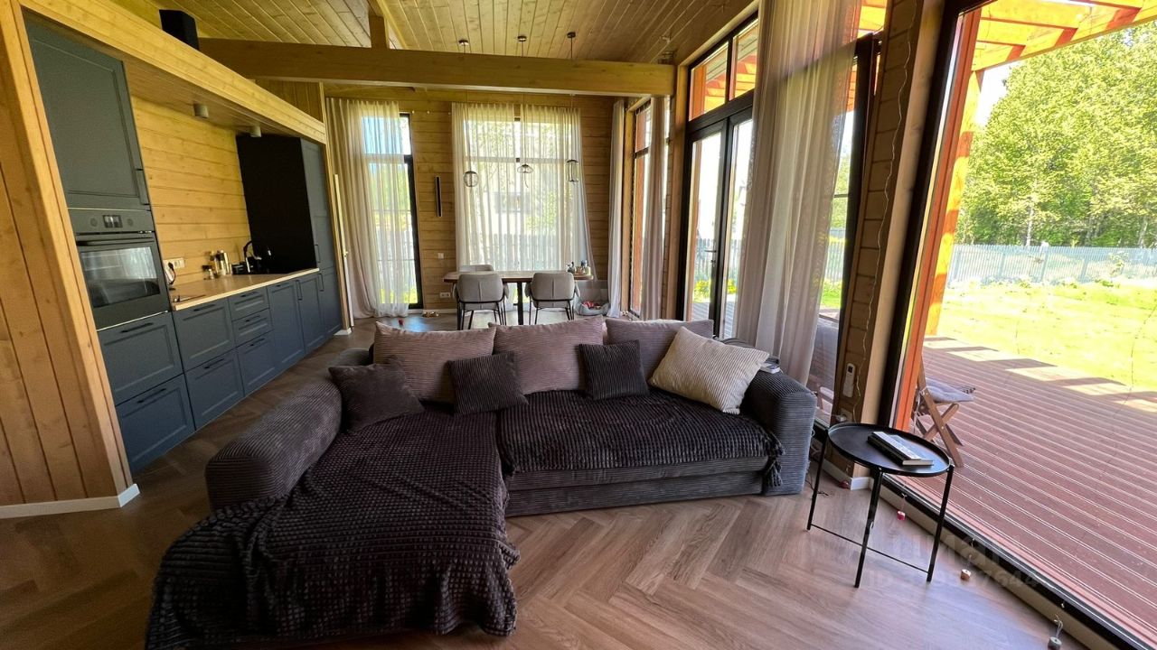Готовый современный дом в стиле хай-тек с участком около леса и ручья в коттеджном поселке. В доме: просторная кухня-гостиная, 4 спальни, 2 санузла, техническое помещение, большая кладовая-постирочная, просторная терраса из лиственницы с крышей, освещением, дополнительными розетками и видом на лес. Полностью укомплектован: коммуникации, мебель, кухня, техника (в том числе кондиционер) готовый вариант для круглогодичного проживания. Каркасный дом, очень теплый: утеплен по кругу 200мм. Окна REHAU с увеличенным профилем, не пропускающие холод в зимнее время. В кухне-гостиной большие панорамные окна в пол и высокие потолки (3.7 метра). Печь-камин Aristov с максимальной панорамой пламени. Эксплуатируемая крыша. В прихожей, кладовой-постирочной, санузлах керамогранит с теплым полом. Кухня-гостиная качественный кварц-винил елочкой (полностью водостойкий). Проведен высокоскоростной оптоволоконный интернет. Забор по трем сторонам с автоматическими воротами (итальянская автоматика) и готовым заездом. Сделаны выводы под камеры. Выровнен участок и посажен клеверный газон. Участок 13.7 соток со своим выходом в лес, где можно ещё часть облагородить для себя. Идеальное расположение участка, одно из наиболее тихих мест без трафика автомобилей, тишина и спокойствие обеспечены.