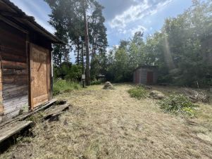 Участок огорожен ,высокий,сухой,с многолетними соснами :). На участке 2 колодца( надо прокачать), сарайчик,теплица ,гараж,уличный туалет. 2 заезда на участок.