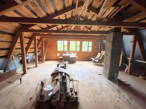 В доме 3 этажа-цокольный-комната,санузел с ванной,в кафеле, просторное подсобное помещение, лестница. 2 й этаж-кухня -гостиная,комната с камином,еще санузел. 3 й этаж-мансарда,свободная планировка.