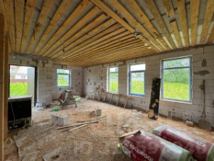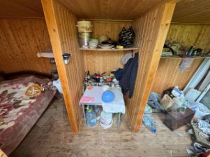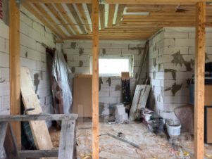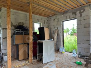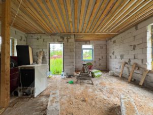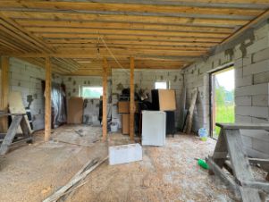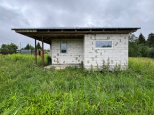 Дом 2024 года постройки. Свайный фундамент (32 сваи), на бетонной плите. Крыша из профнастила. Планировка предполает: спальнуюб комнату и большую кухню-гостинную, + санузел и гардеробная.
