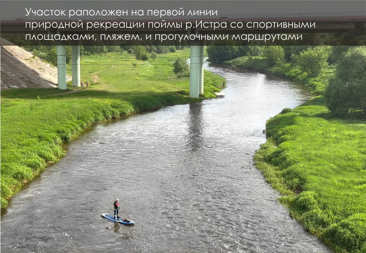 С участка открывается очень красивый вид на реку Истру и Церковь Благовещения Пресвятой Богородицы в Павловской Слободе.