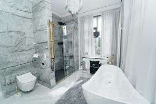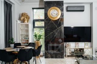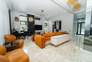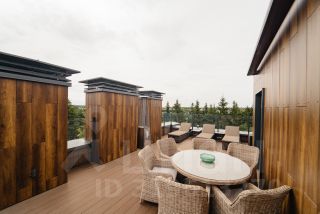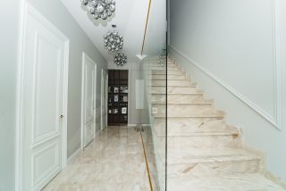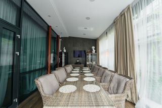 Кирпично-монолитный конструктив гарантирует прочность и долговечность дома. В отделке использованы высококачественные материалы, а современный интерьер дополнен стильной мебелью и предметами декора. В санузлах установлена сантехника от ведущих мировых брендов. Гостиная с камином располагает к теплым и душевным встречам. Круглогодичная терраса с теплыми полами и радиаторами, являющаяся продолжением гостиной, станет любимым местом отдыха в любое время года. Окна террасы оснащены системой дистанционного открывания. На террасе четвертого этажа установлена мебель для отдыха: шезлонги, стол и стулья. Гриль "Napoleon" позволит наслаждаться кулинарными шедеврами на свежем воздухе, любуясь панорамой гольф-полей.