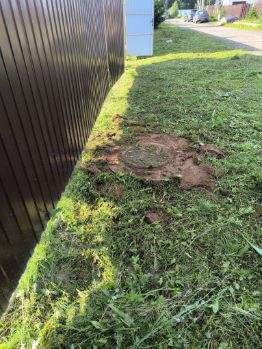 своя ливневка, газовая труба проходит под землей в метре вдоль участка.